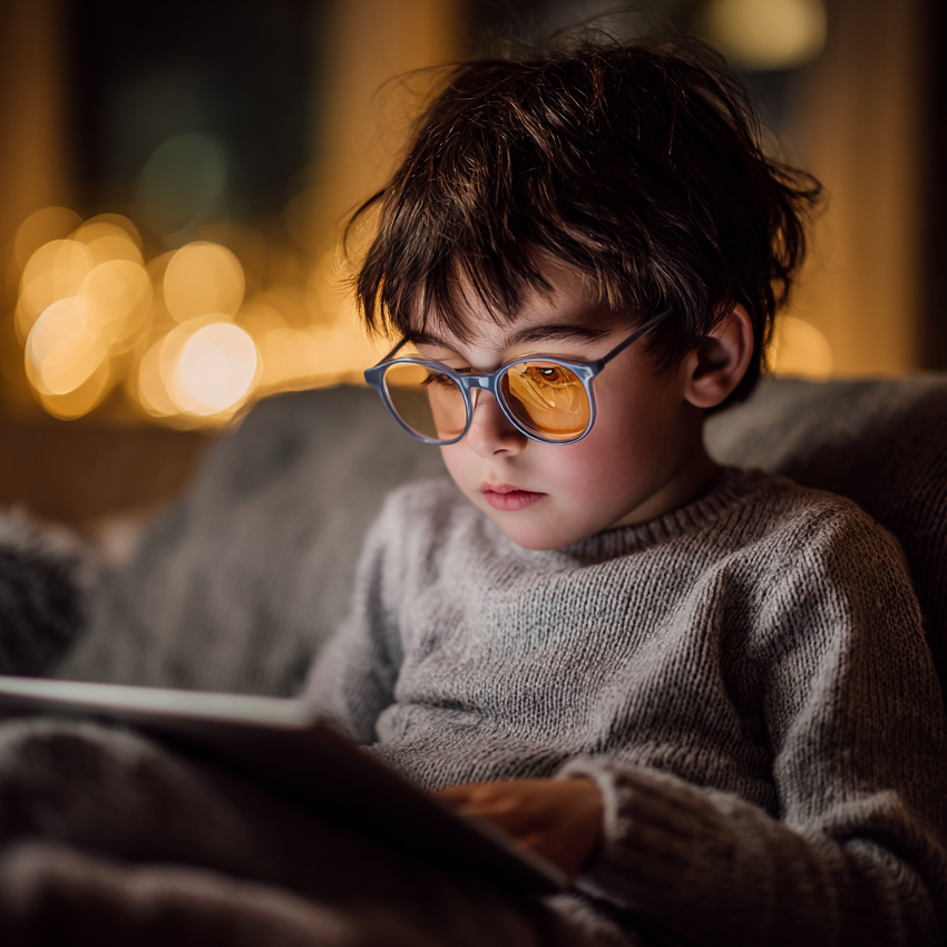 Ja. Børn er dobbelt så følsomme over for blåt lys som voksne. Forældre rapporterer om færre klager over trætte øjne og lettere sengetider efter regelmæssig brug.