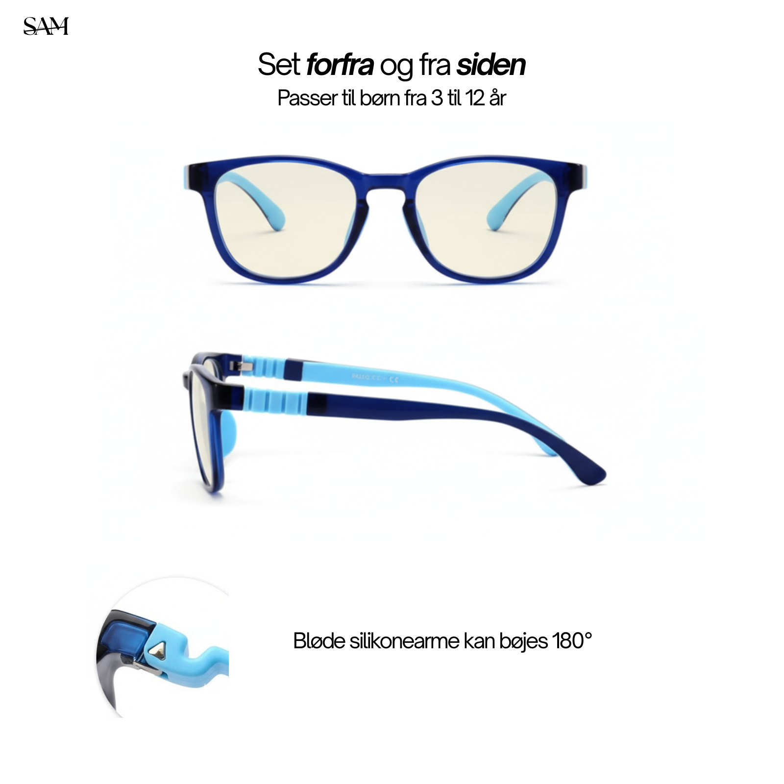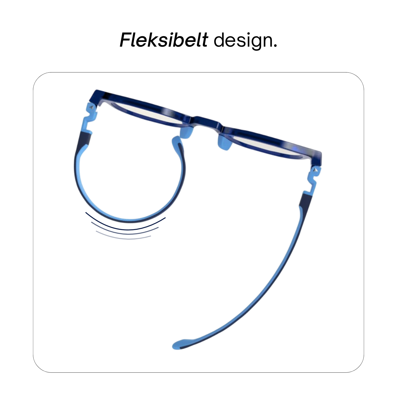 TR90 Silikone — blødt, fleksibelt og holdbart nok til at modstå fald, bøjninger og leg.